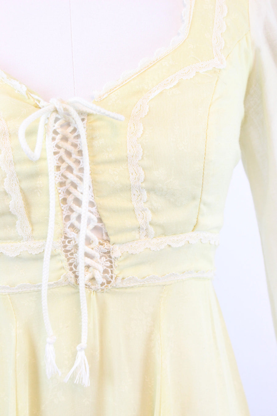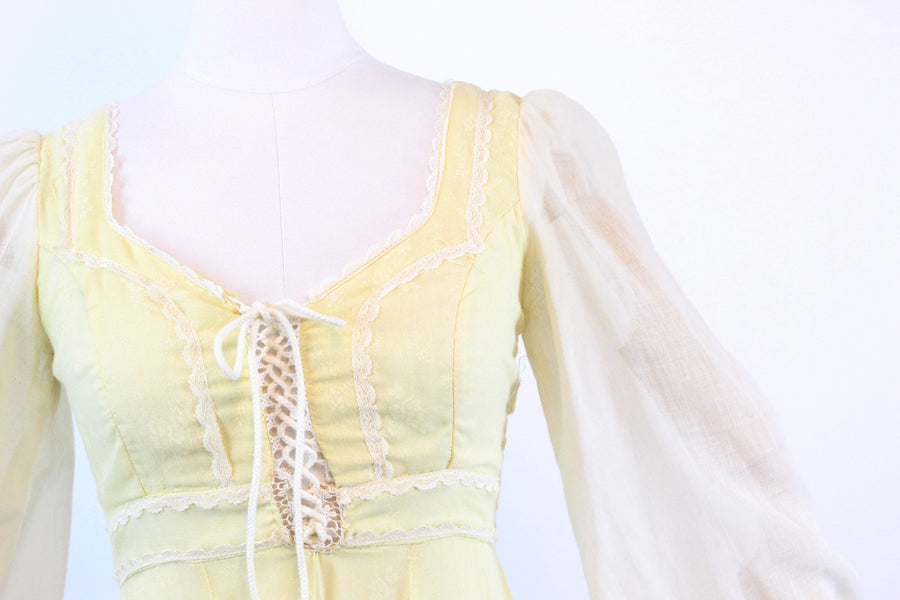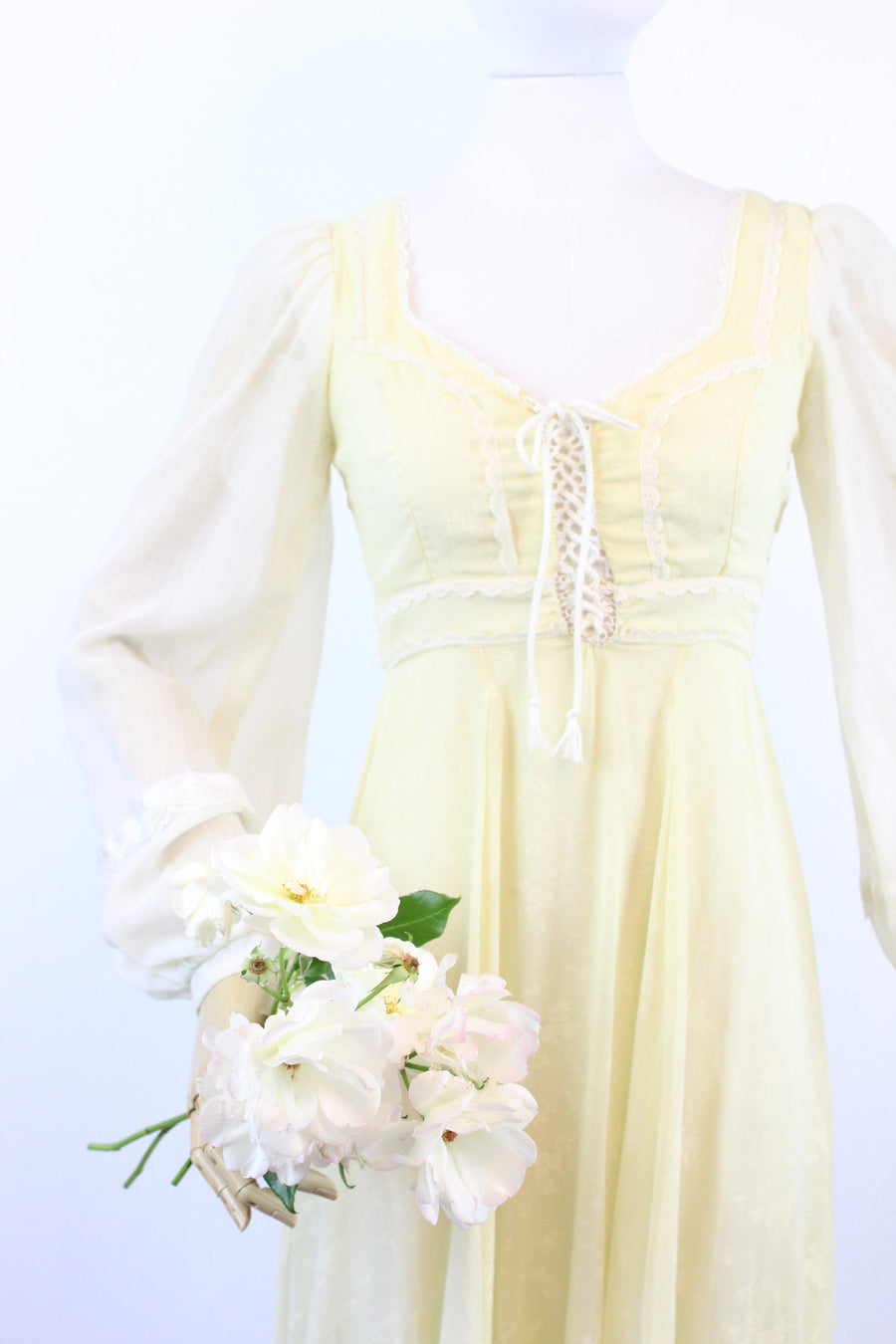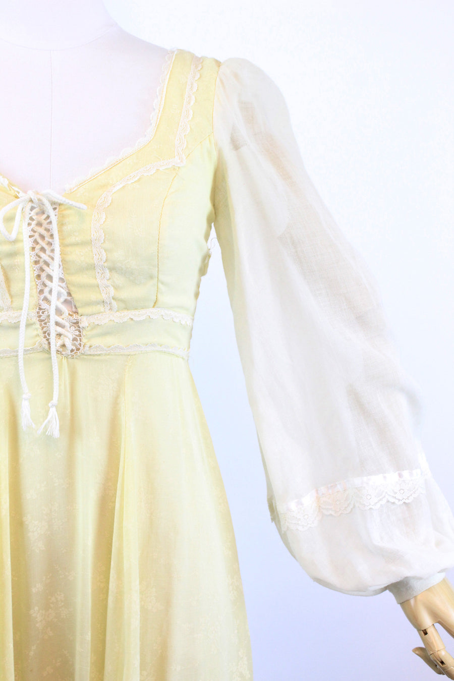 1970s Gunne Sax CORSET yellow floral maxi dress xs | new spring