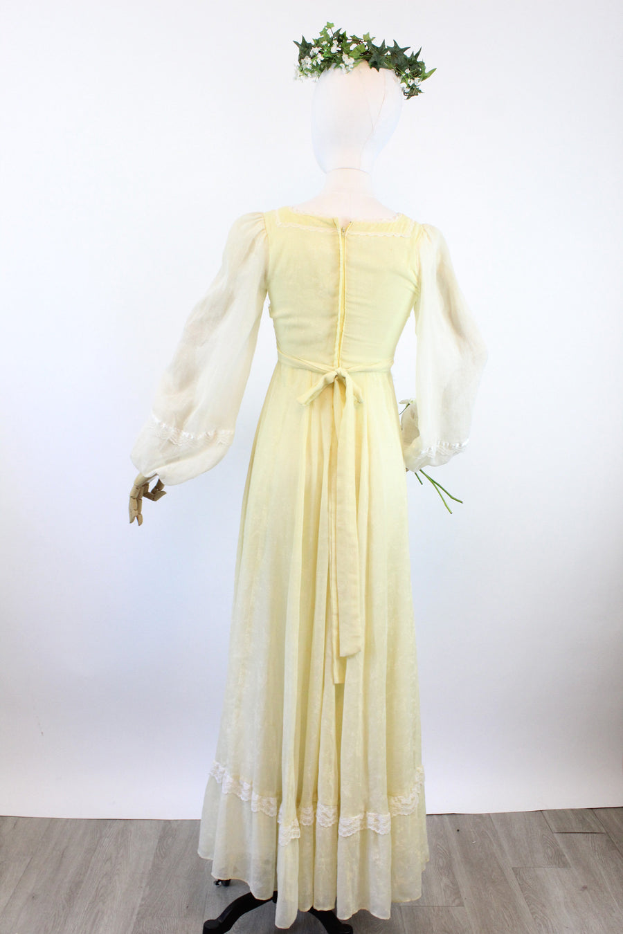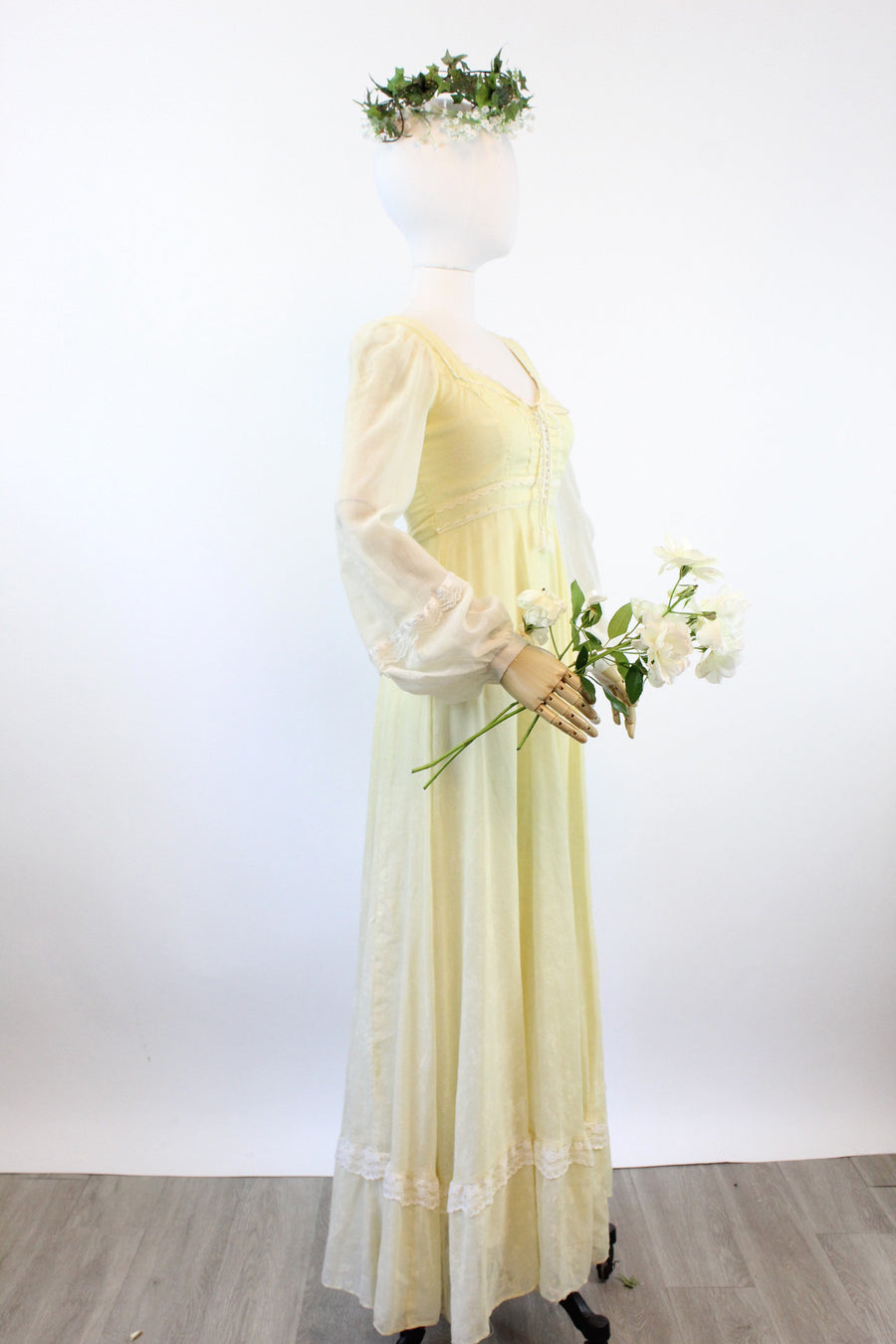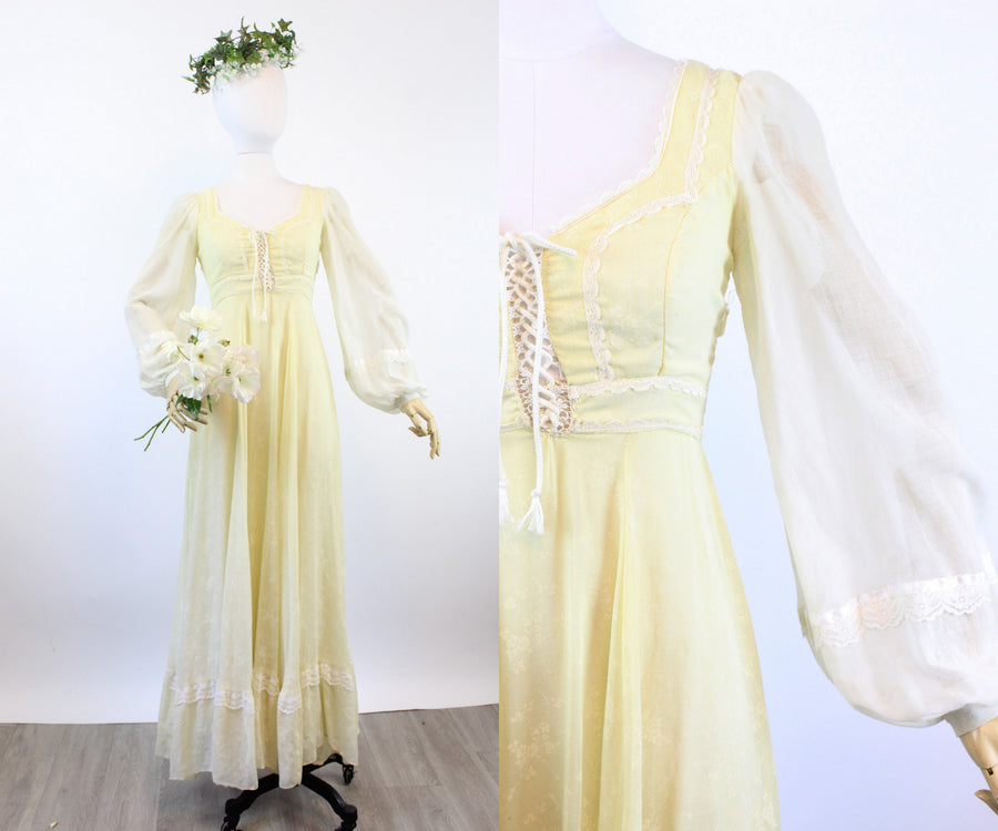 1970s Gunne Sax CORSET yellow floral maxi dress xs | new spring