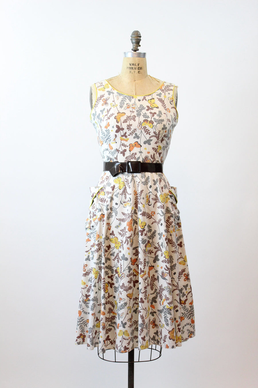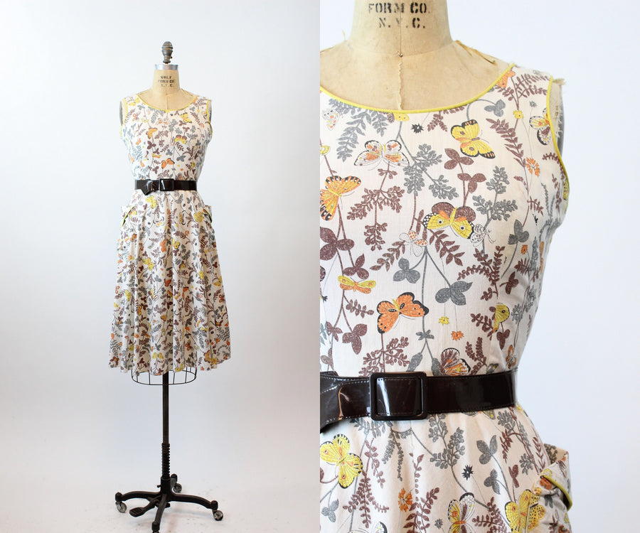 1950s BUTTERFLY moth novelty print dress small | new spring summer