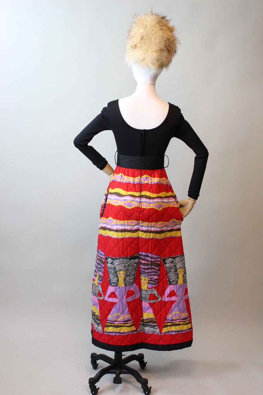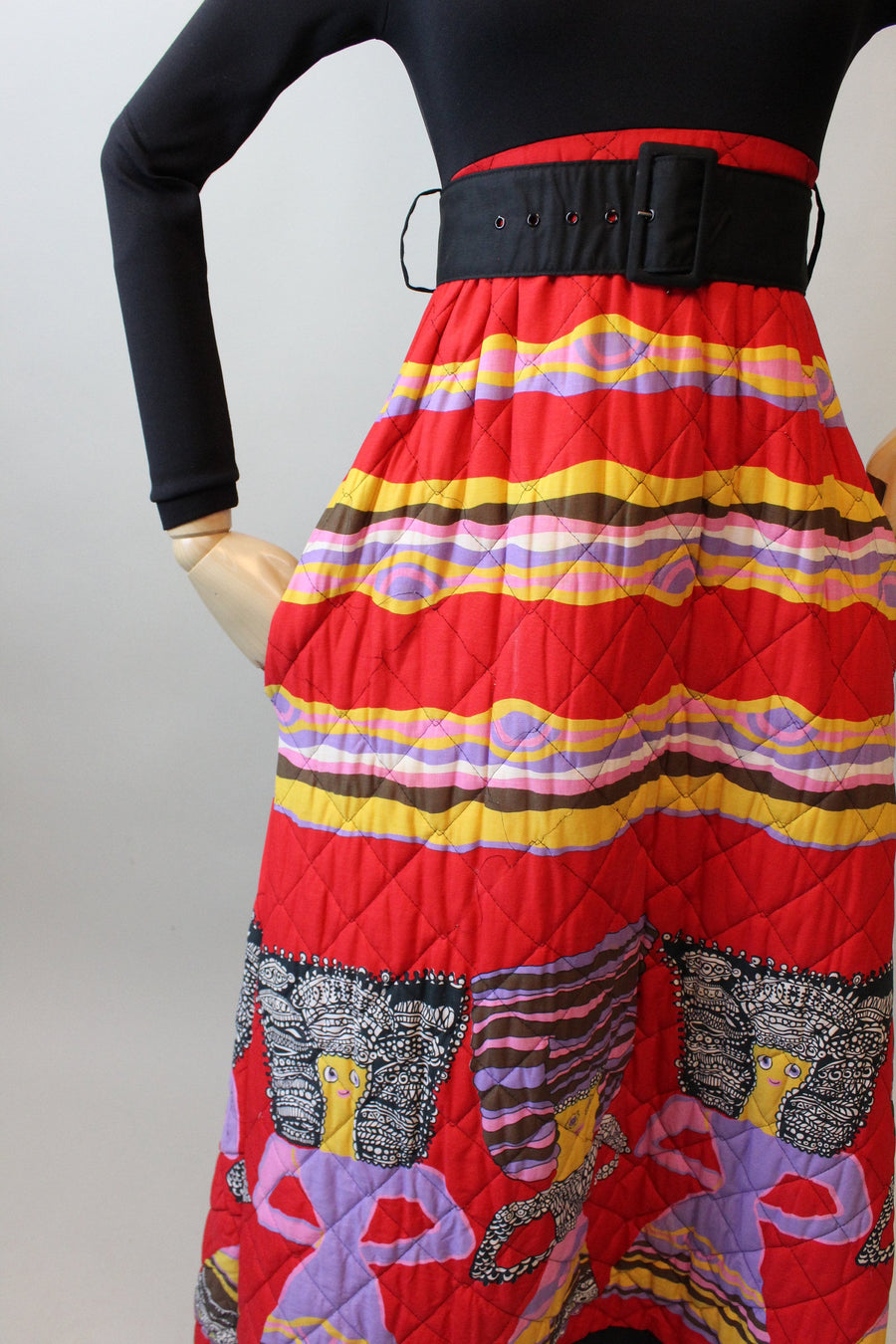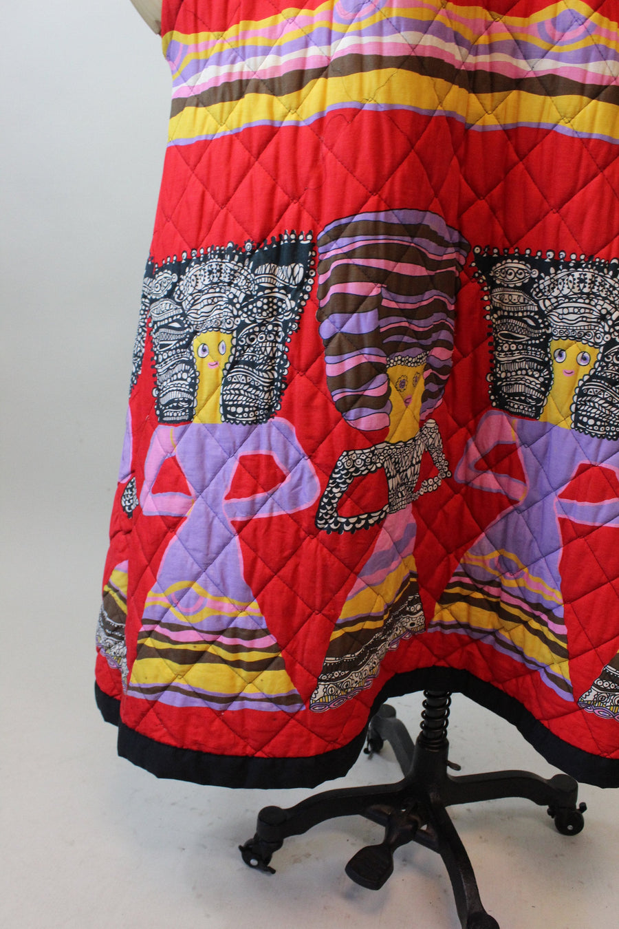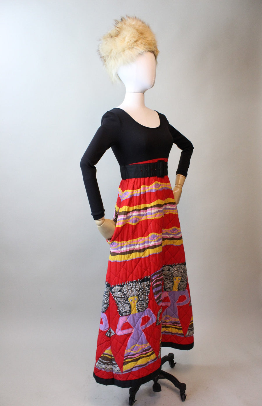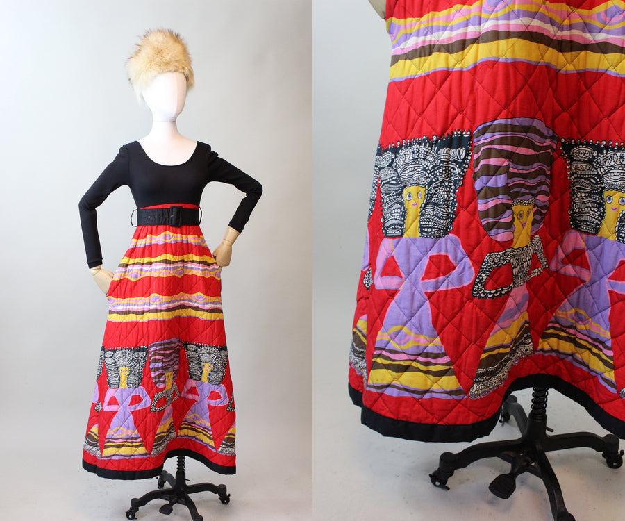 1970s QUILTED WOMEN novelty print maxi dress xs | new fall