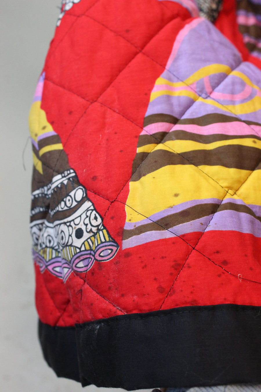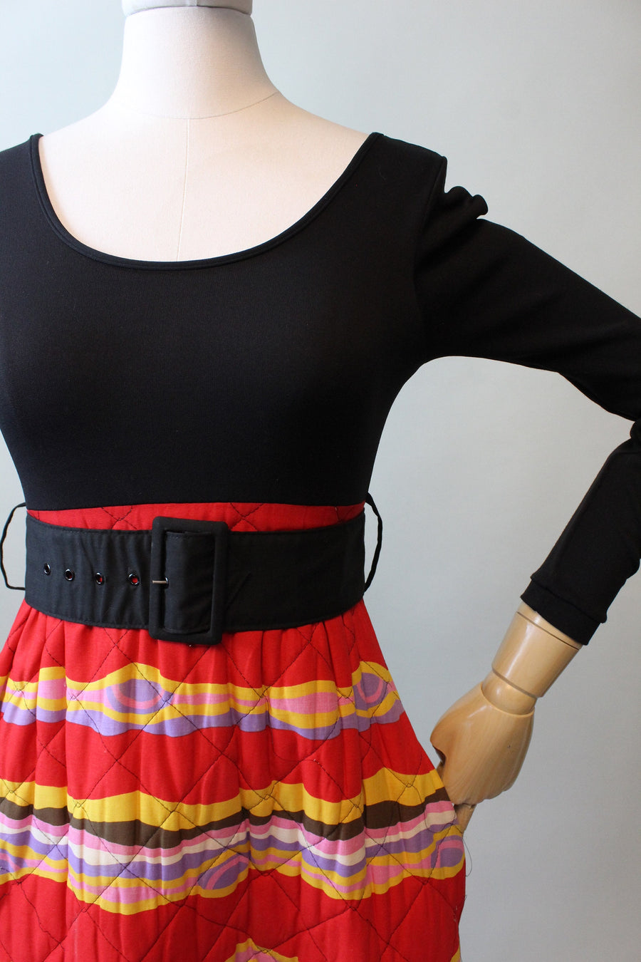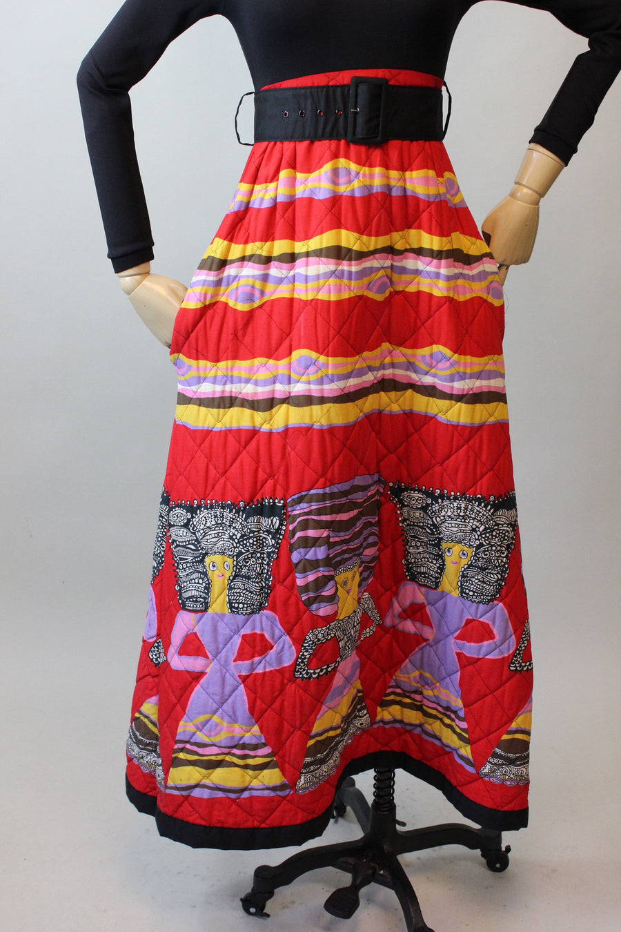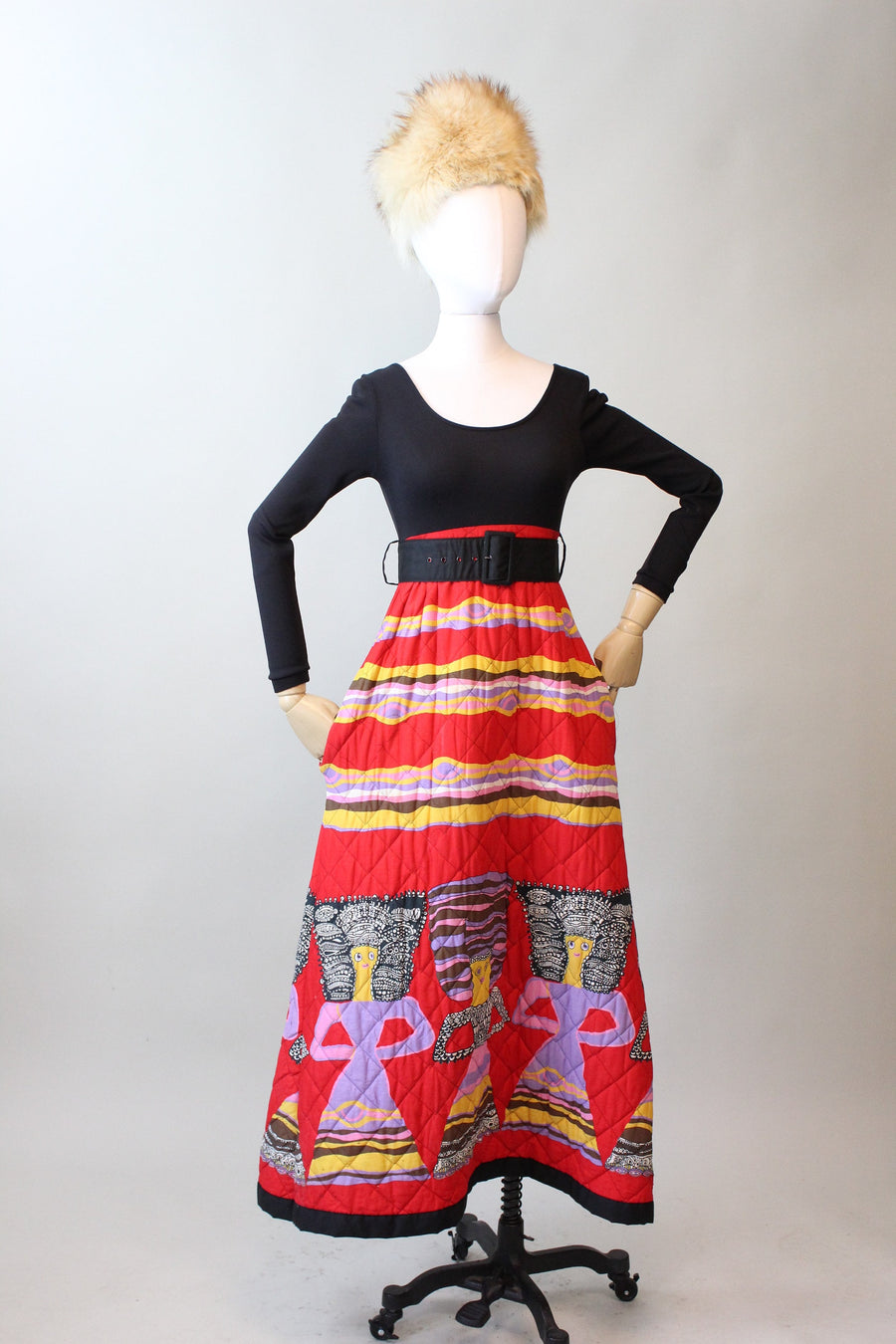1970s QUILTED WOMEN novelty print maxi dress xs | new fall
