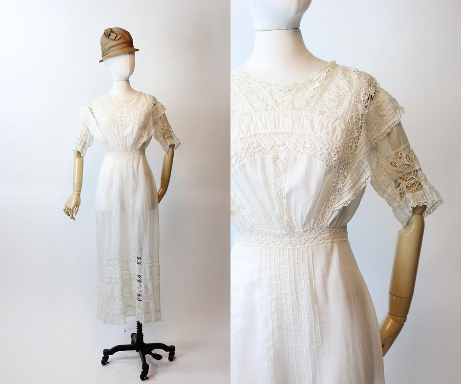 ANTIQUE 1910 EDWARDIAN cotton lace lingerie dress xxs | new spring summer