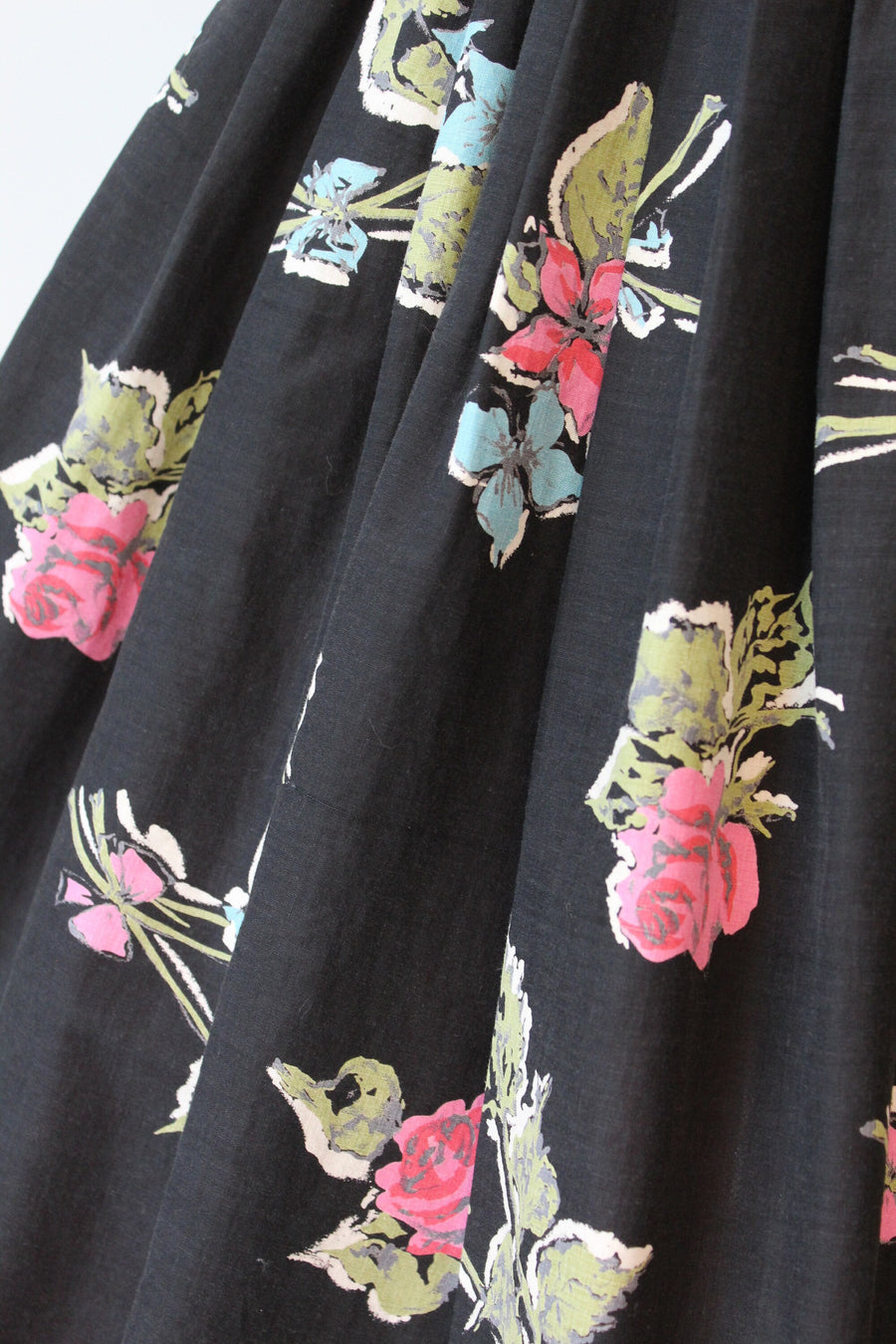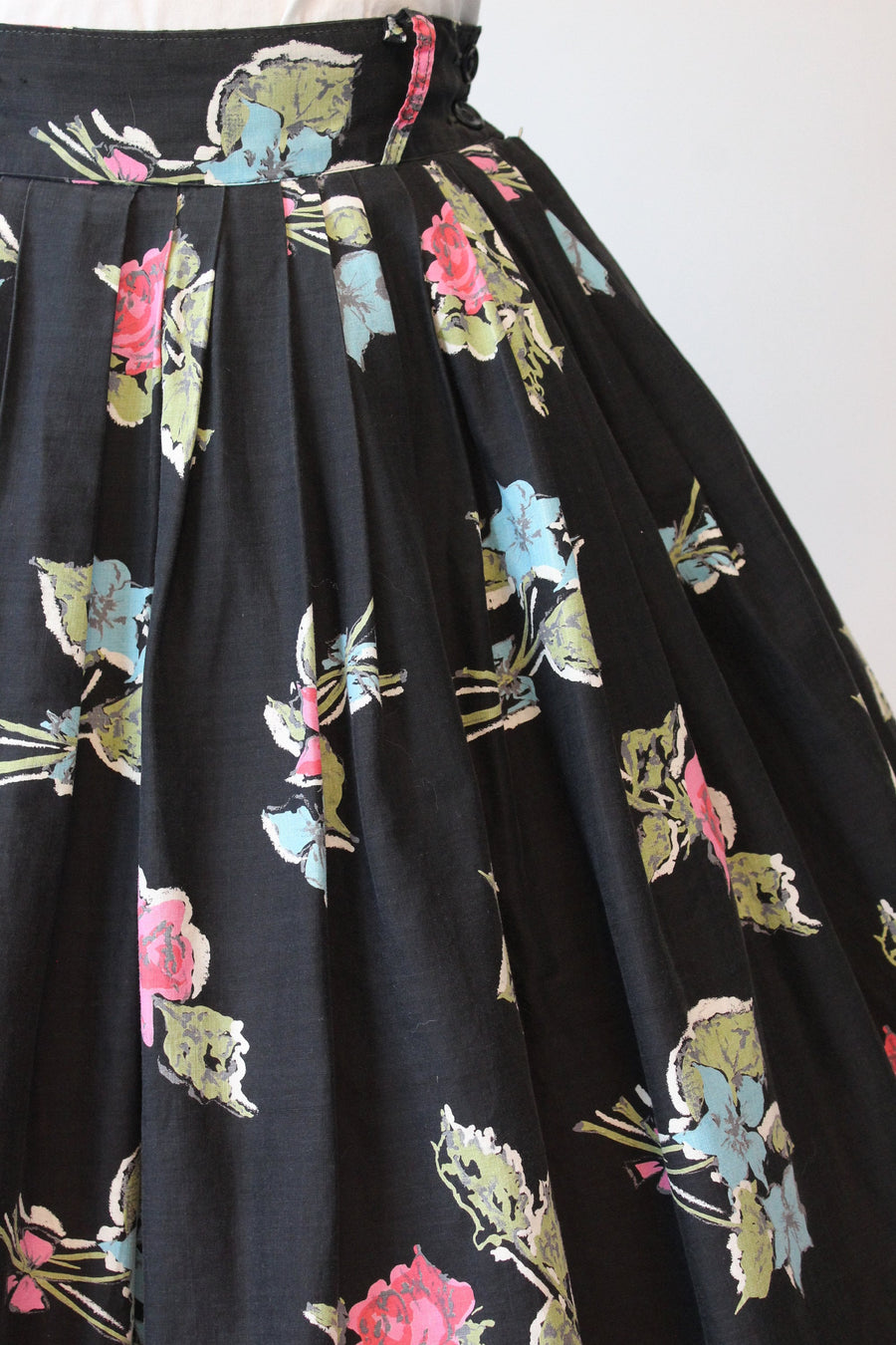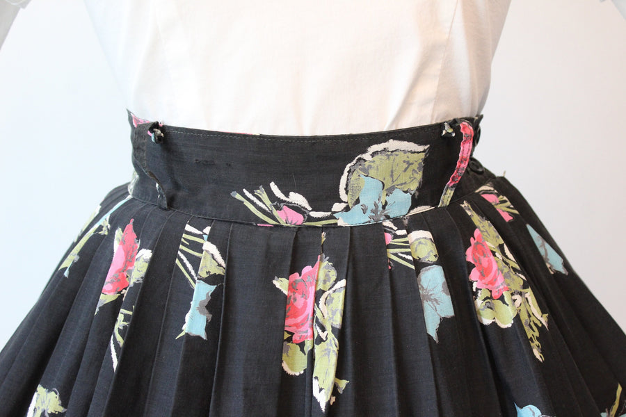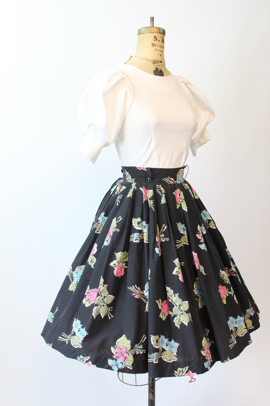 1950s PINK ROSE print cotton skirt small | new spring summer