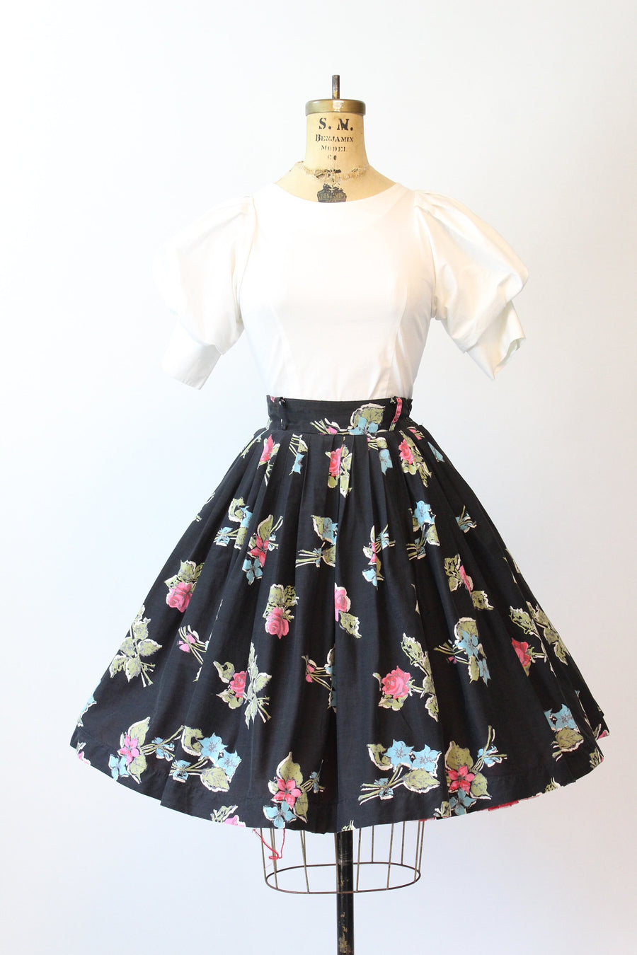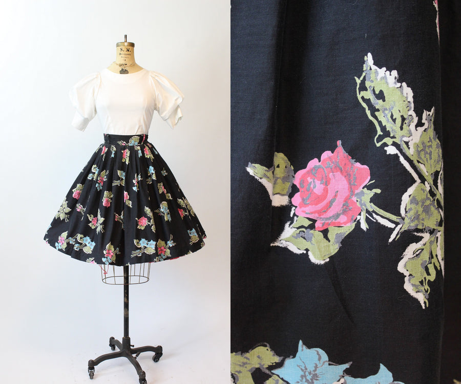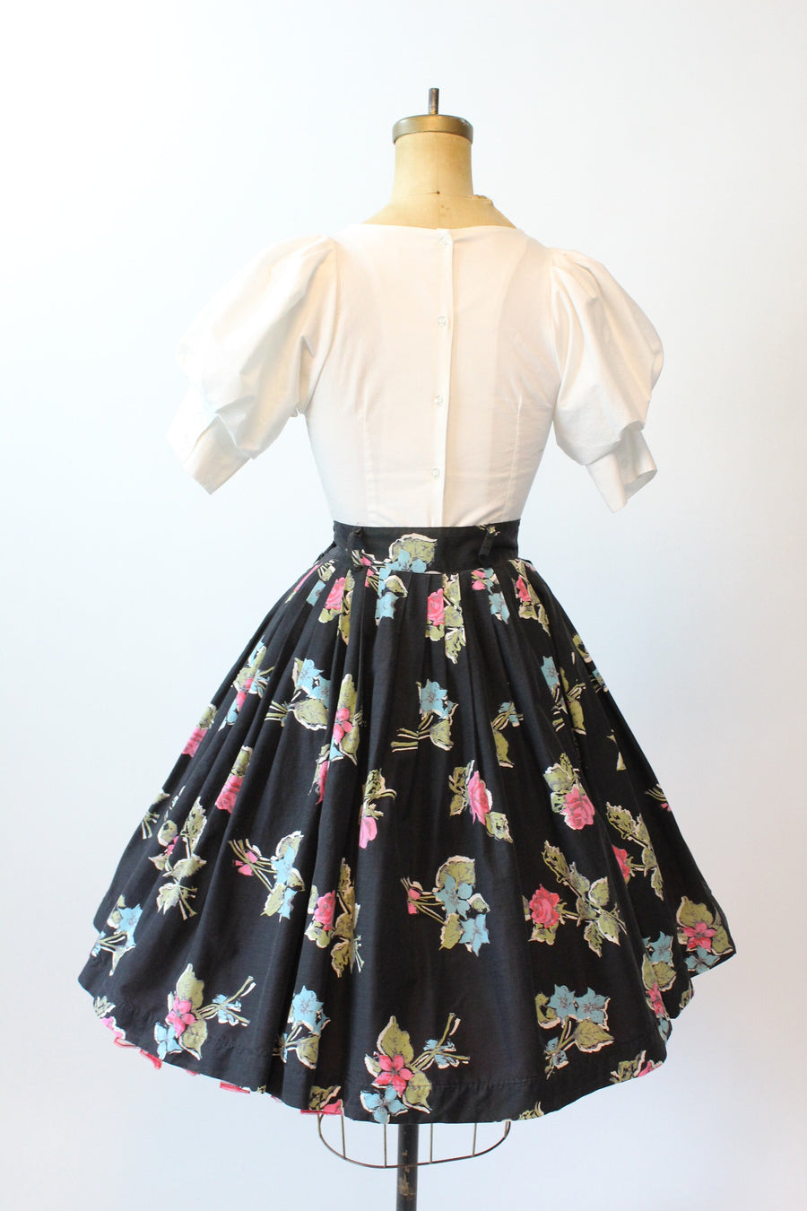 1950s PINK ROSE print cotton skirt small | new spring summer